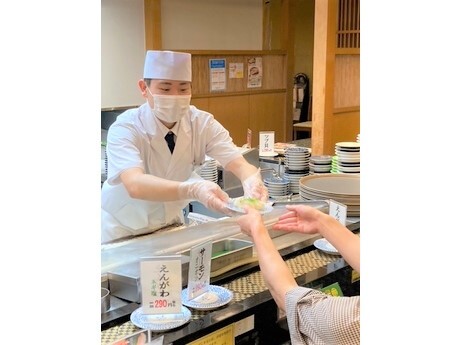 カウンターでお寿司を握ったり、接客したりとやりがいのあるポジションです!