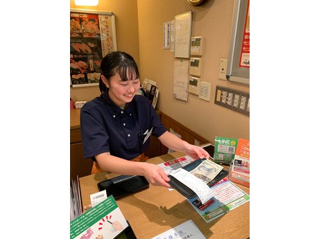 ○ホール業務(お客様ご案内、商品提供、レジ、電話対応)