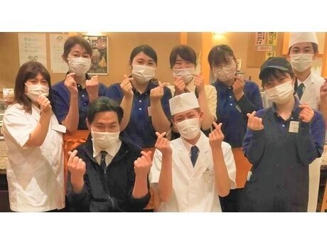 【寿司カウンター】!男女問わず活躍中!職人が丁寧に指導します!高校生や大学生、Wワーク(掛け持ち)の方等も大歓迎!一日3h~でもOK!まずはお電話ください!
